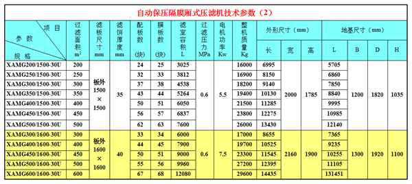 自動保壓隔膜廂式壓濾機技術參數(2)