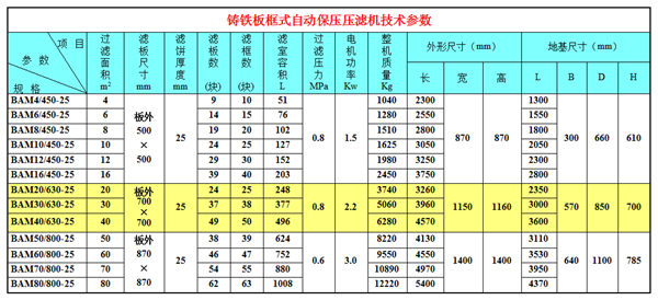 以下為鑄鐵板框式自動保壓壓濾機技術參數